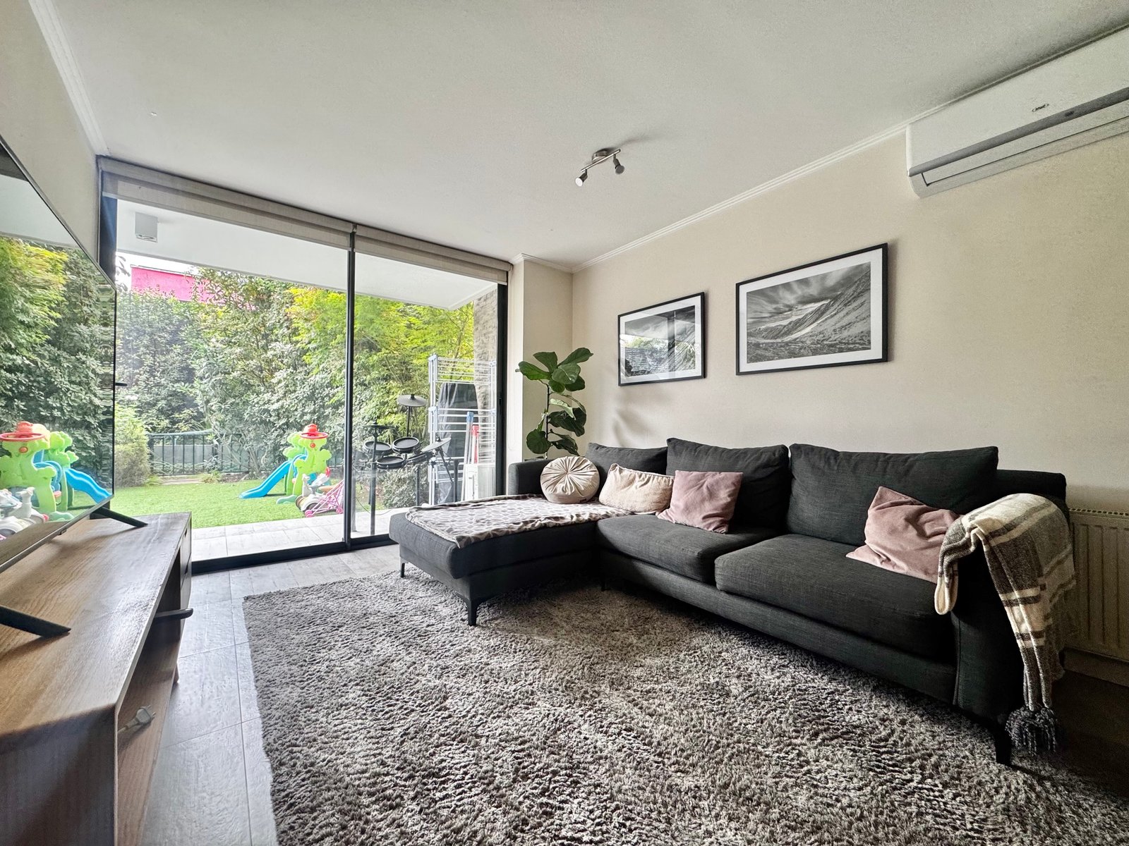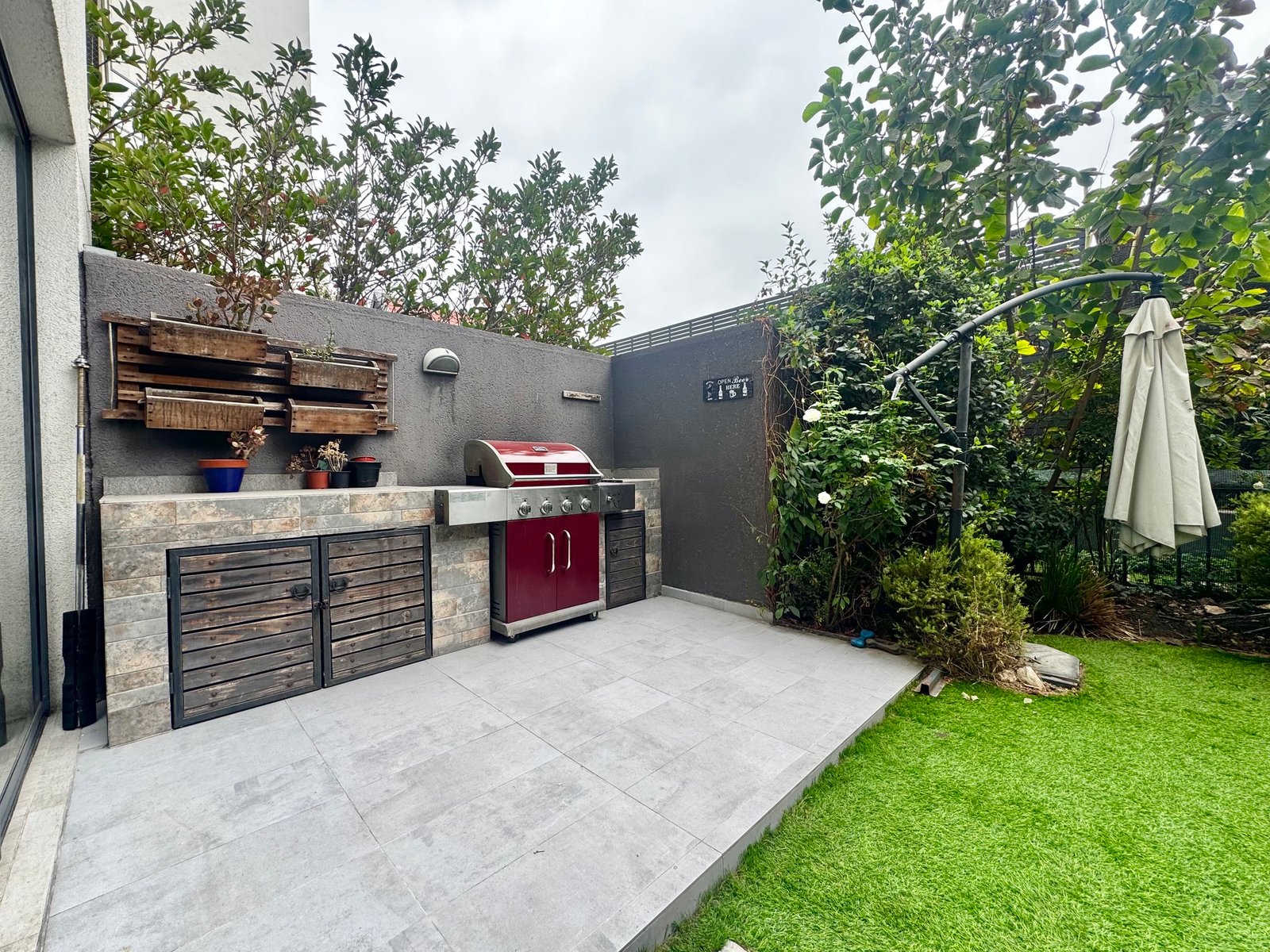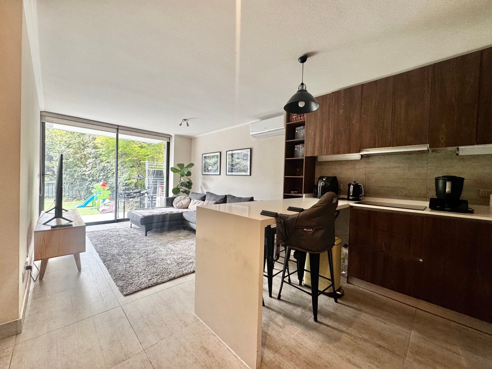 Entramos al departamento y encontramos cocina integrada estilo americana junto al living. Salida a rica terraza con jardín con pasto sintético. Quincho armado. Orientación Poniente.
