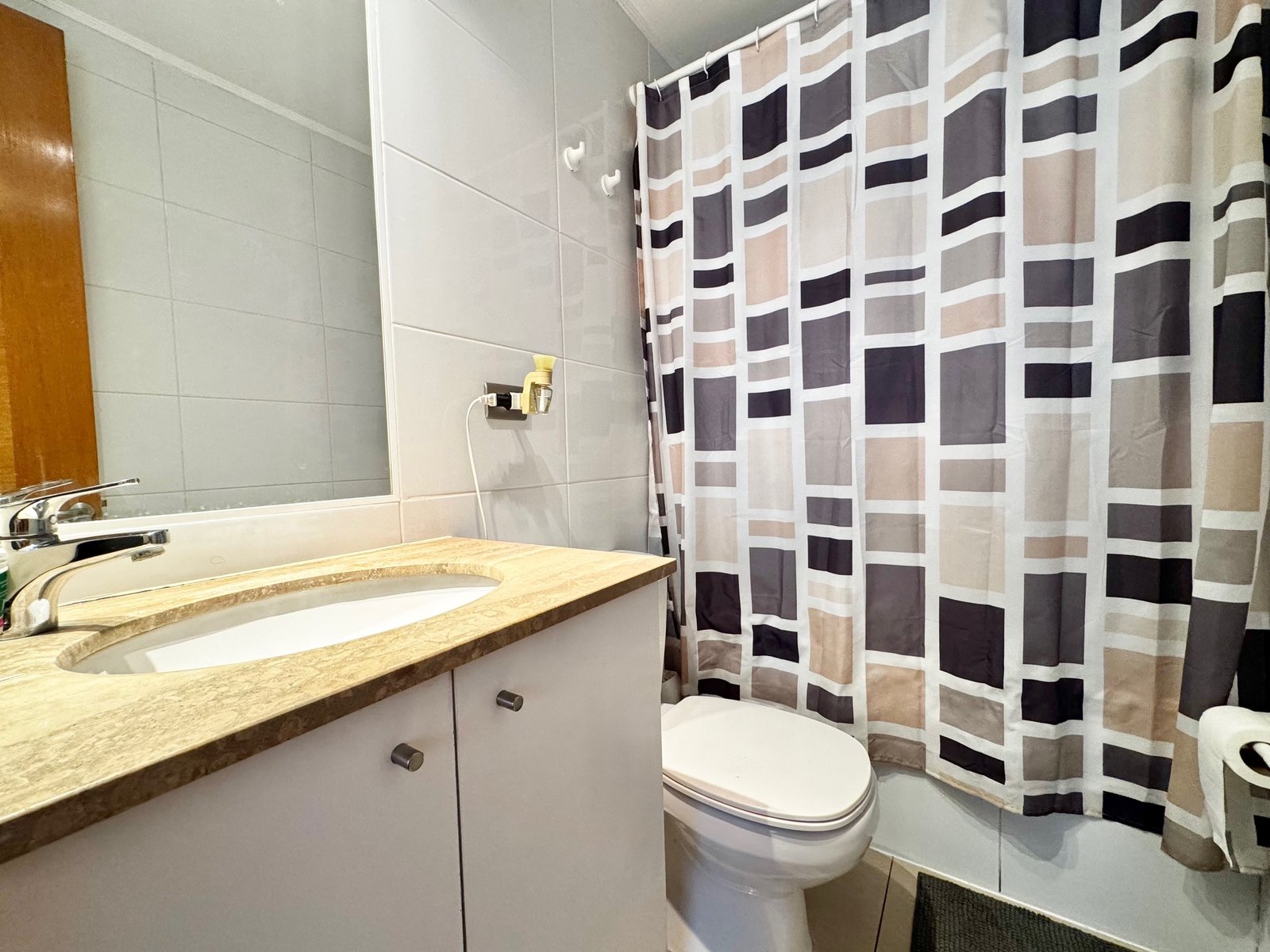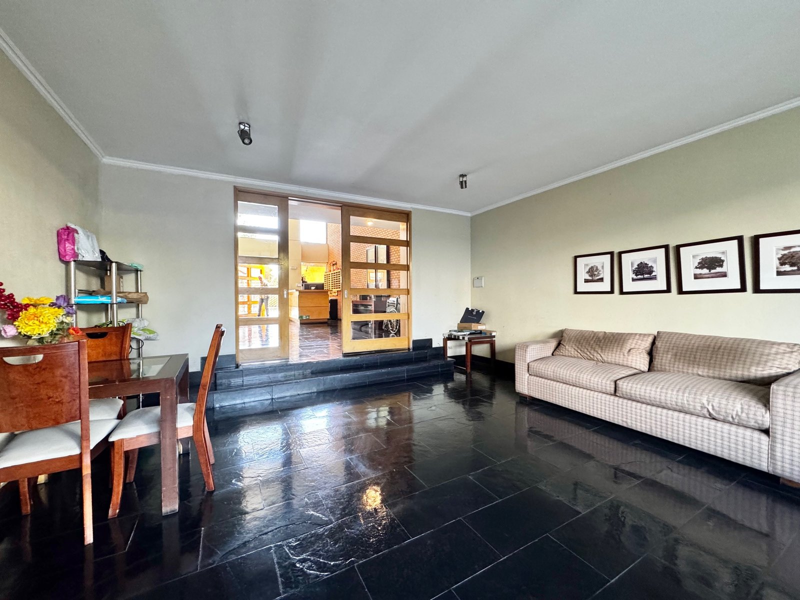 Entramos por hall de distribución y pasamos al living comedor, con orientación nor-oriente. Salida a terraza.