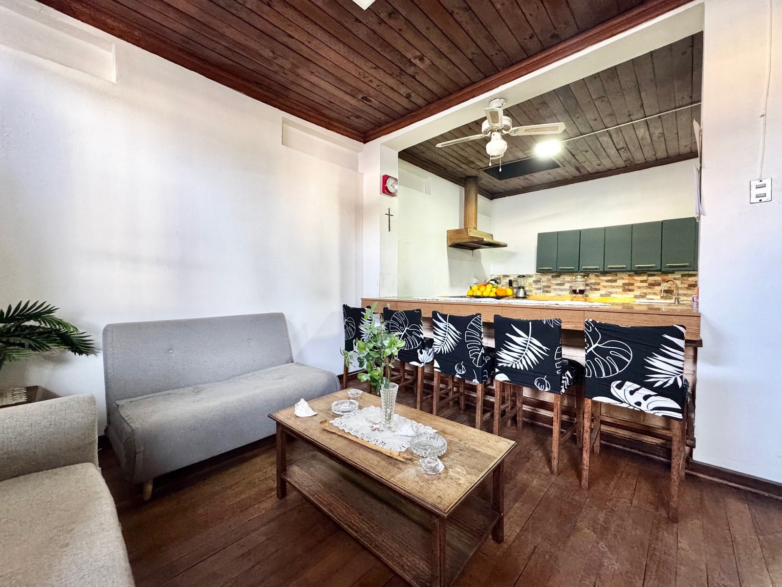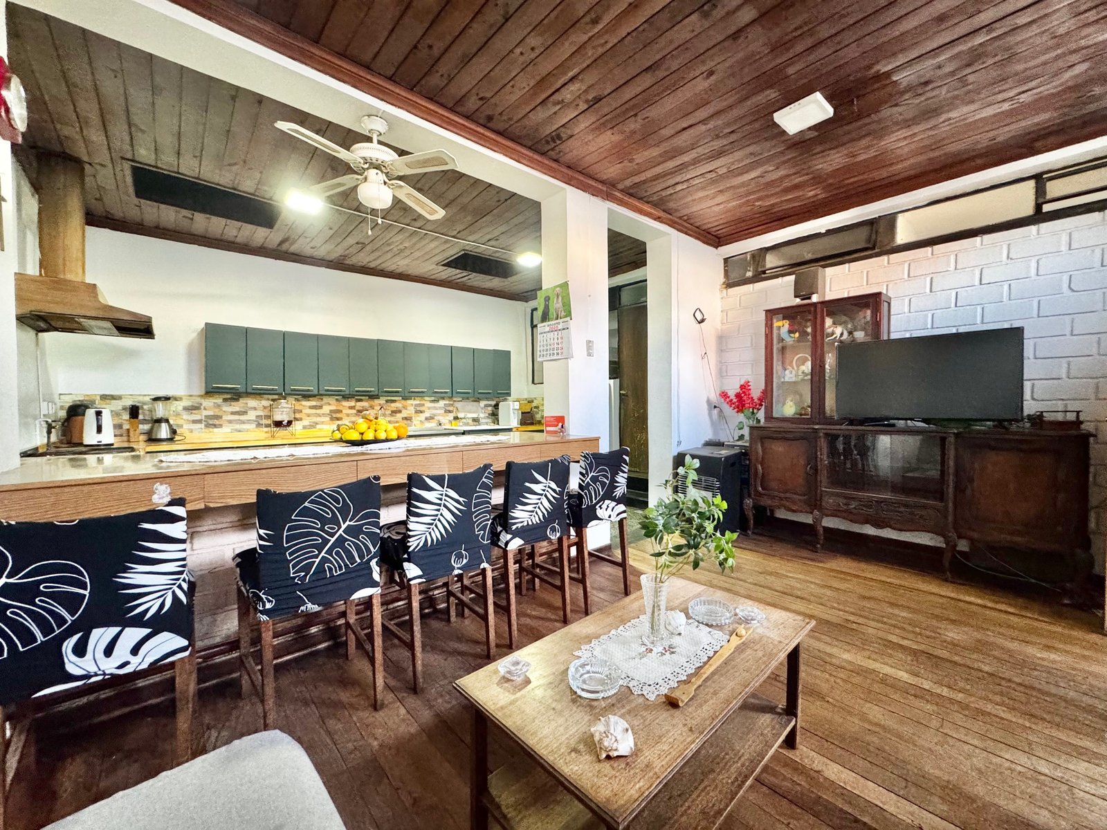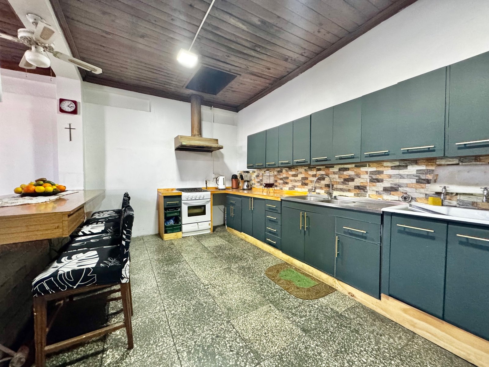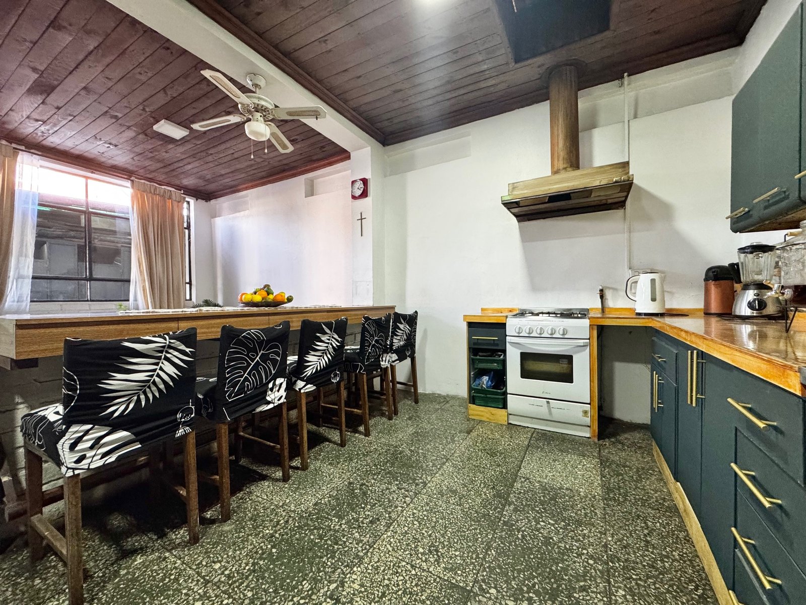 Entramos a living y comedor separados ( hoy se ocupa el comedor como dormitorio ) dejando el espacio de la cocina como gran comedor. La cocina, de gran tamaño, diseñada, construida y regularizada con techos de gran altura y mesón central con espacio para 10 personas sentadas, que además divide el espacio en dos. Una salita de estar o TV room ideal para reuniones familiares.