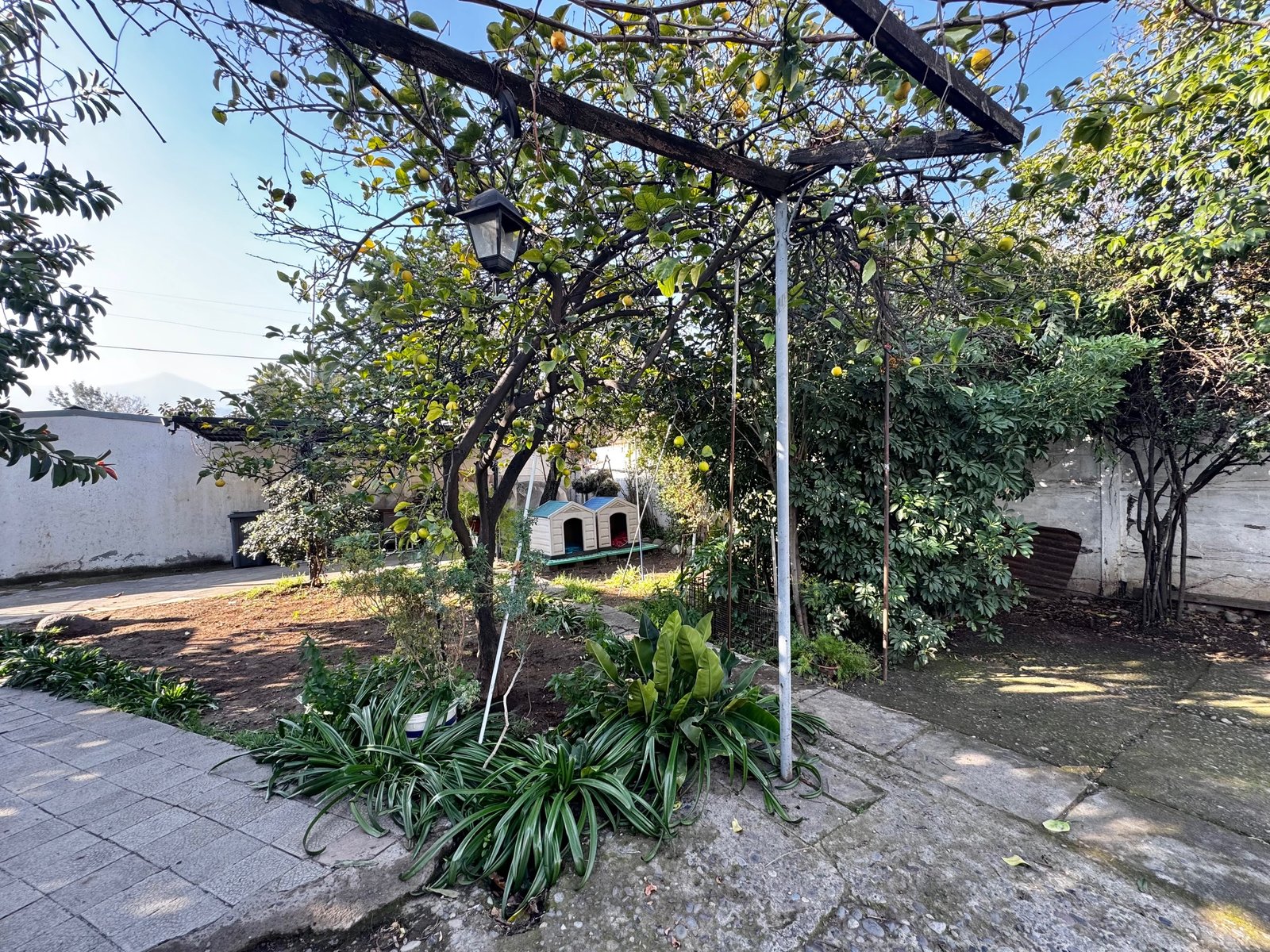 Gran terreno o jardín con algunos árboles frutales y un amplio espacio ideal para construir un quincho. Hoy se ocupa como logia.