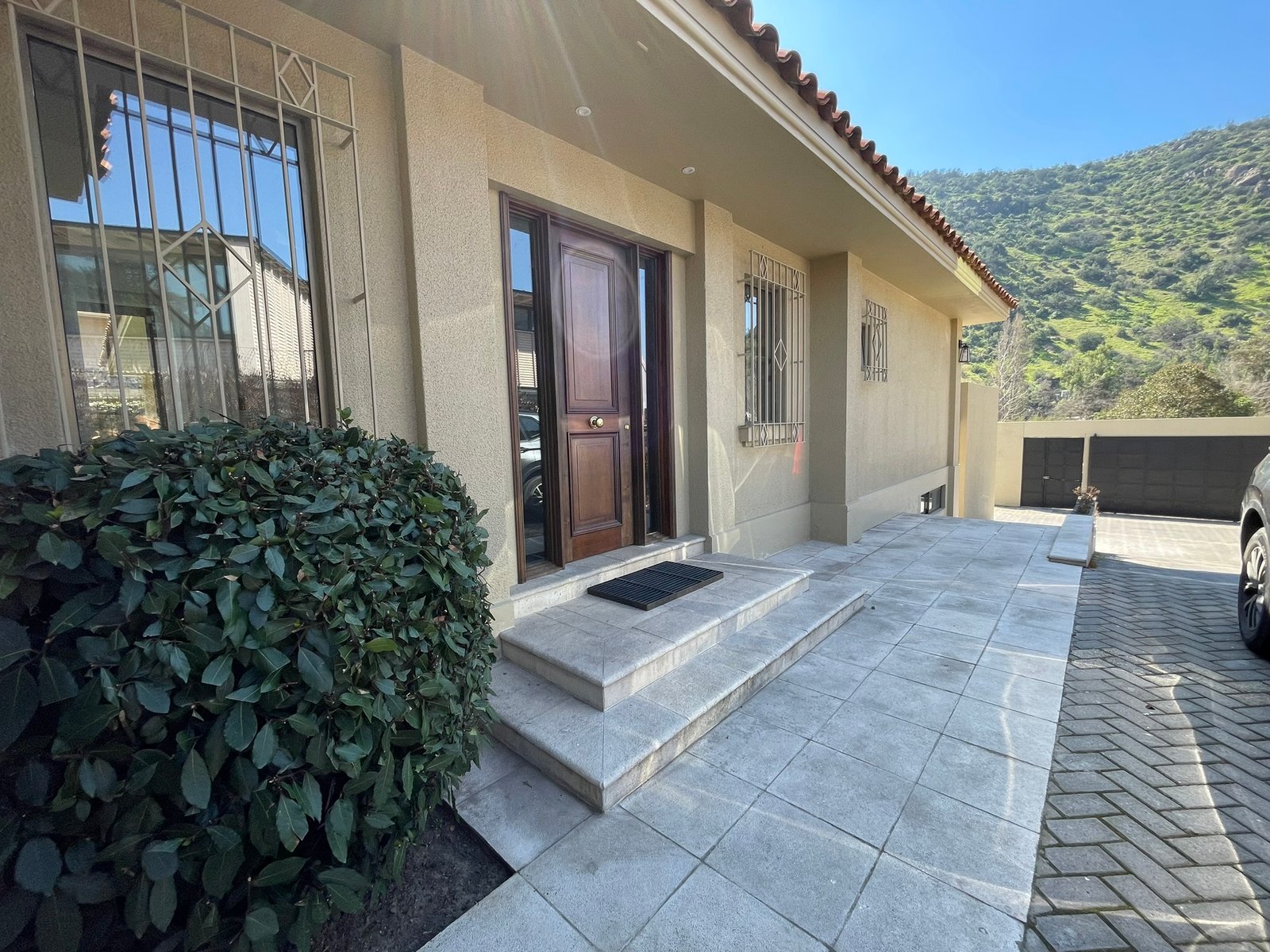 La casa tiene un amplio acceso, manteniéndola muy privada y creando un estupendo patio frontal que pueden utilizar de diferentes formas.