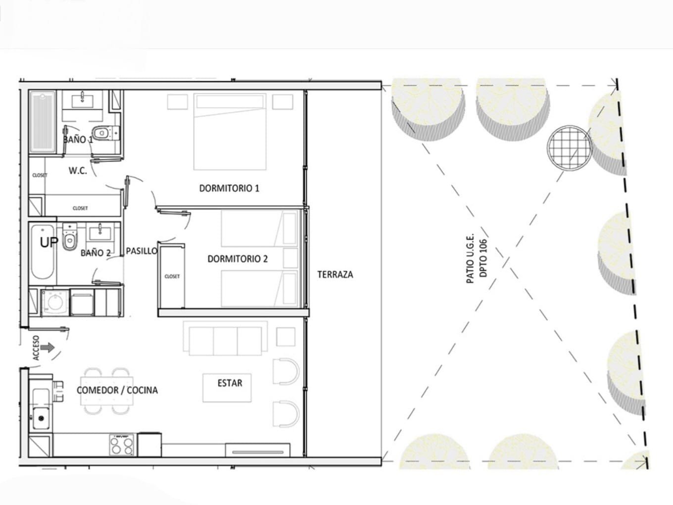 Este departamento cuenta con 2 dormitorios, 2 Baños amplia terraza , living y comedor.