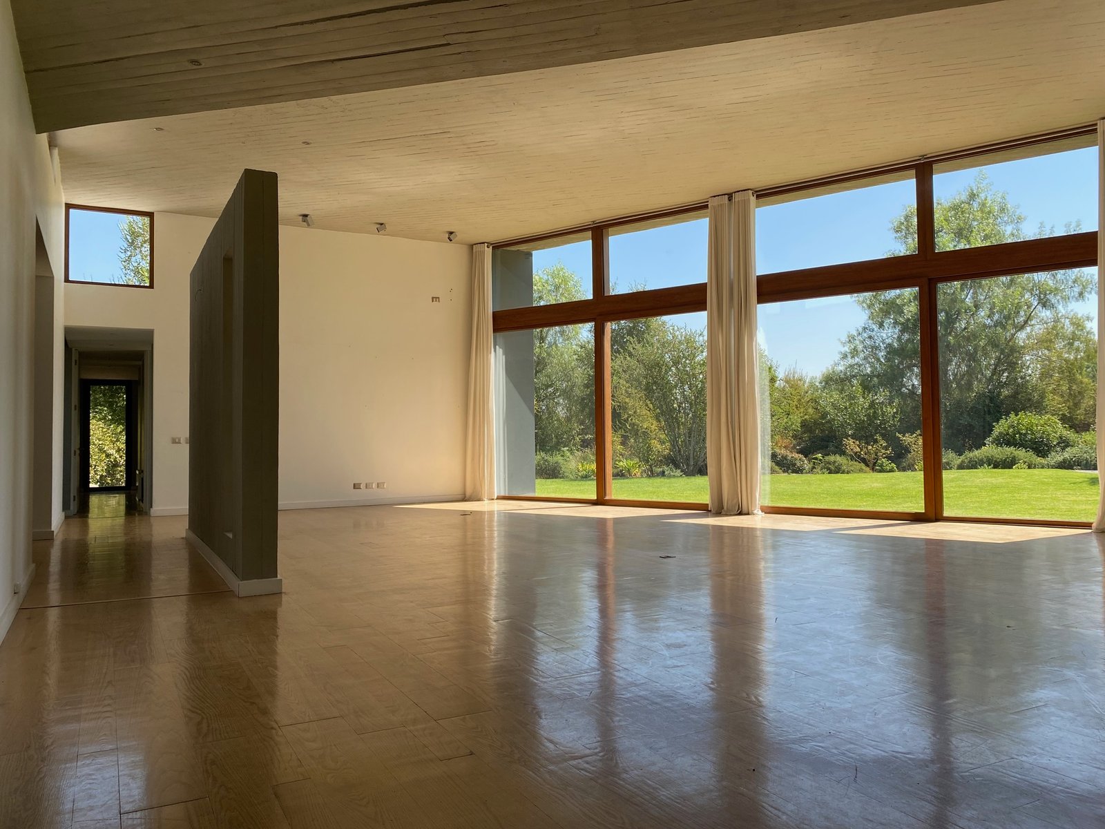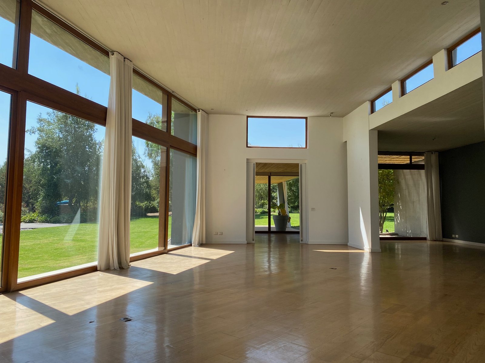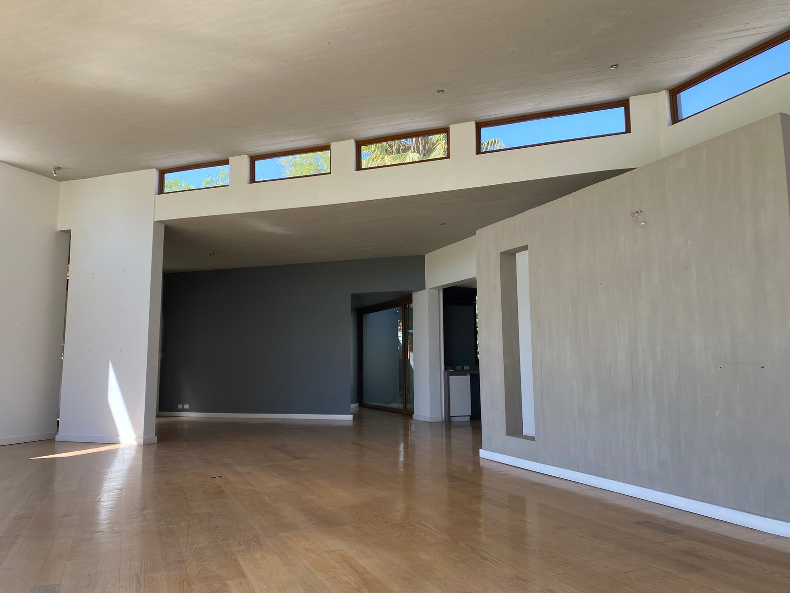 Hall de distribución amplio, con pared que divide los espacios y conecta con gran living con cielos a doble altura y maravillosa luz natural. Orientación Nor-poniente.