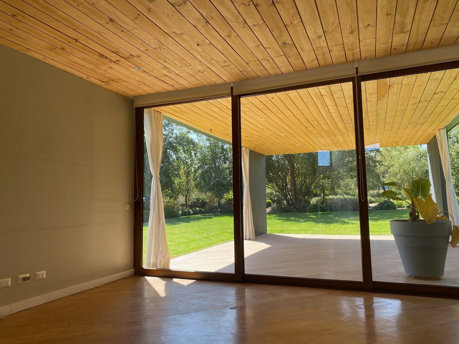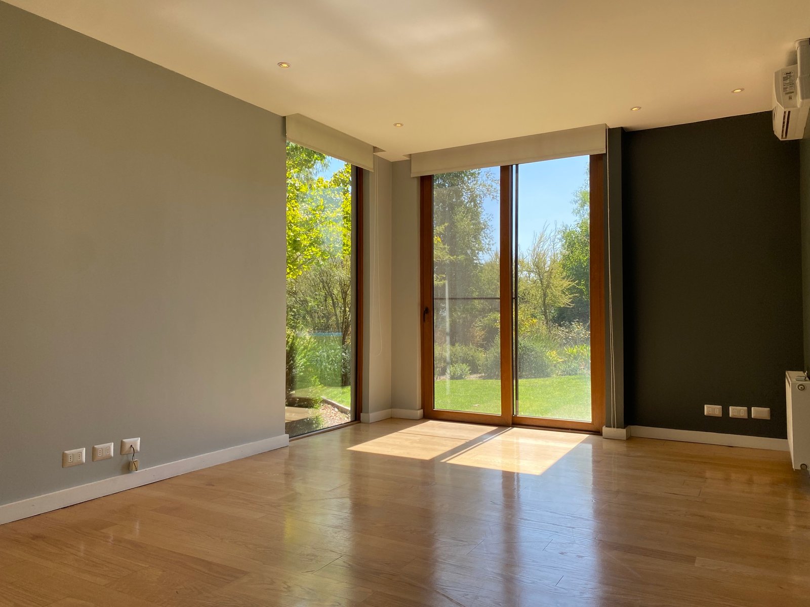 Comedor bastante amplio, semi integrado al living. Una cómoda sala de estar o tv room con puerta corredera que separa los espacios del living. Salida a amplia terraza totalmente techada. Patio duro ideal para construir un magnífico quincho o zona de parrilla.