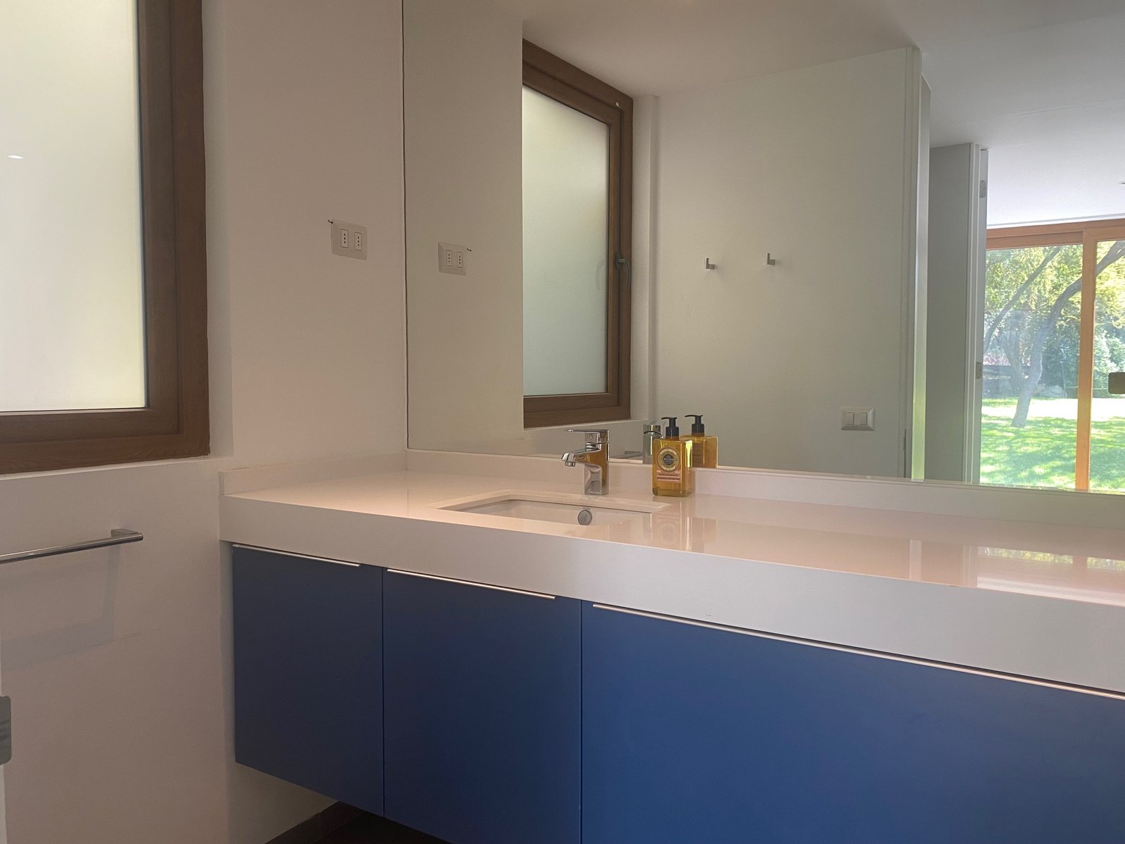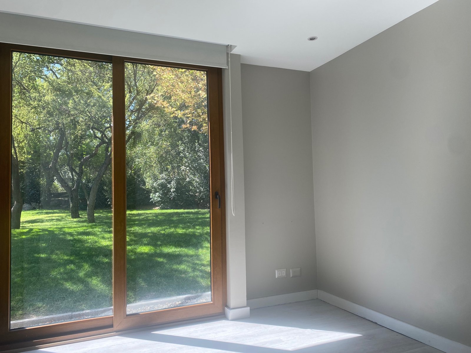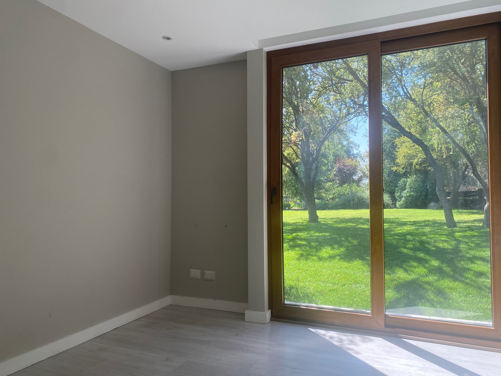 A un costado de la casa caminamos por pasillo y encontramos el dormitorio principal en suite con lindo baño con vista a verde. Puertas con salida desde el dormitorio al jardín. Buena cantidad de closets asi como buen tamaño del dormitorio.