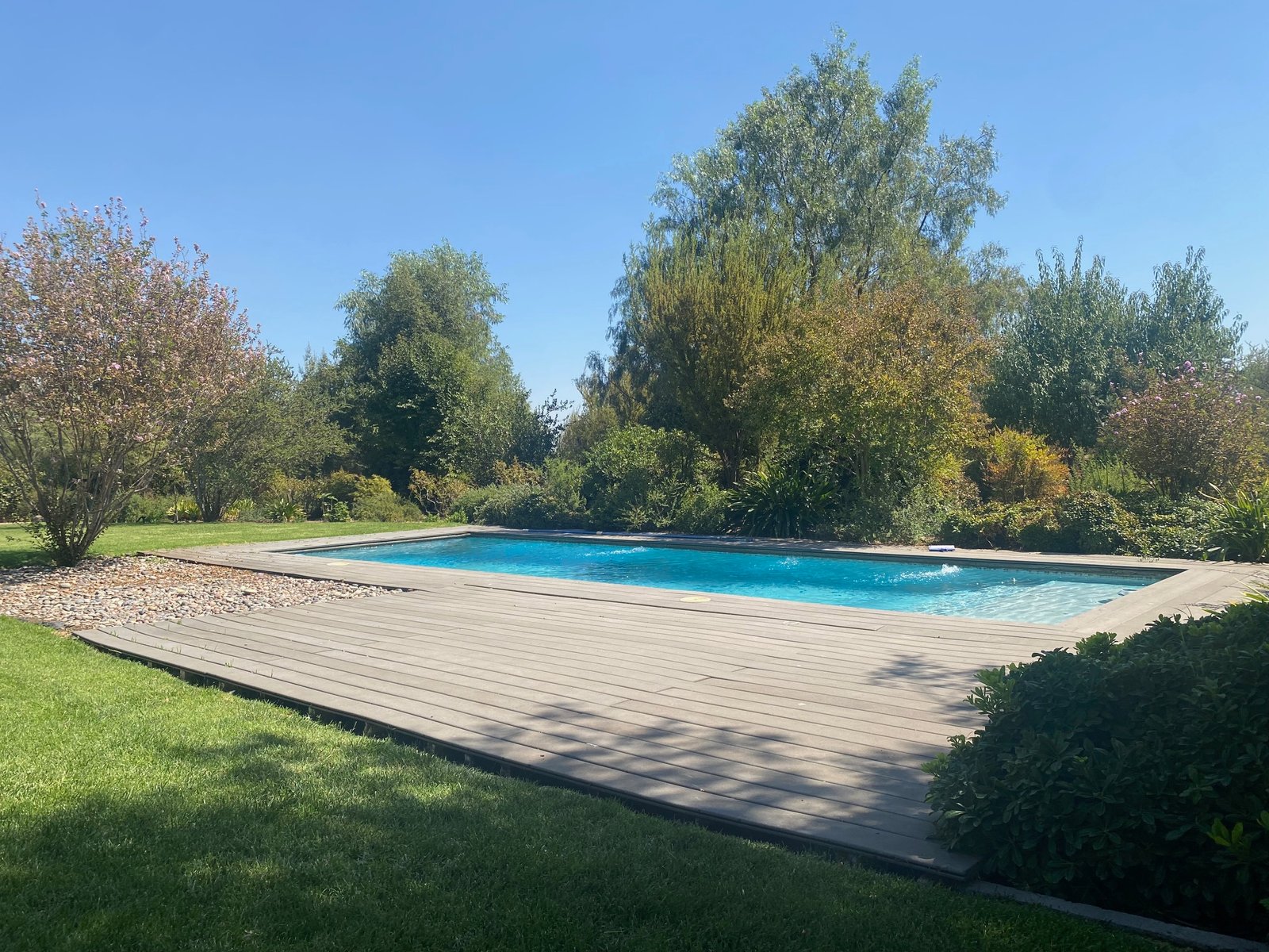 Gran jardín formado con piscina de buen porte. Colindan con campo de golf.