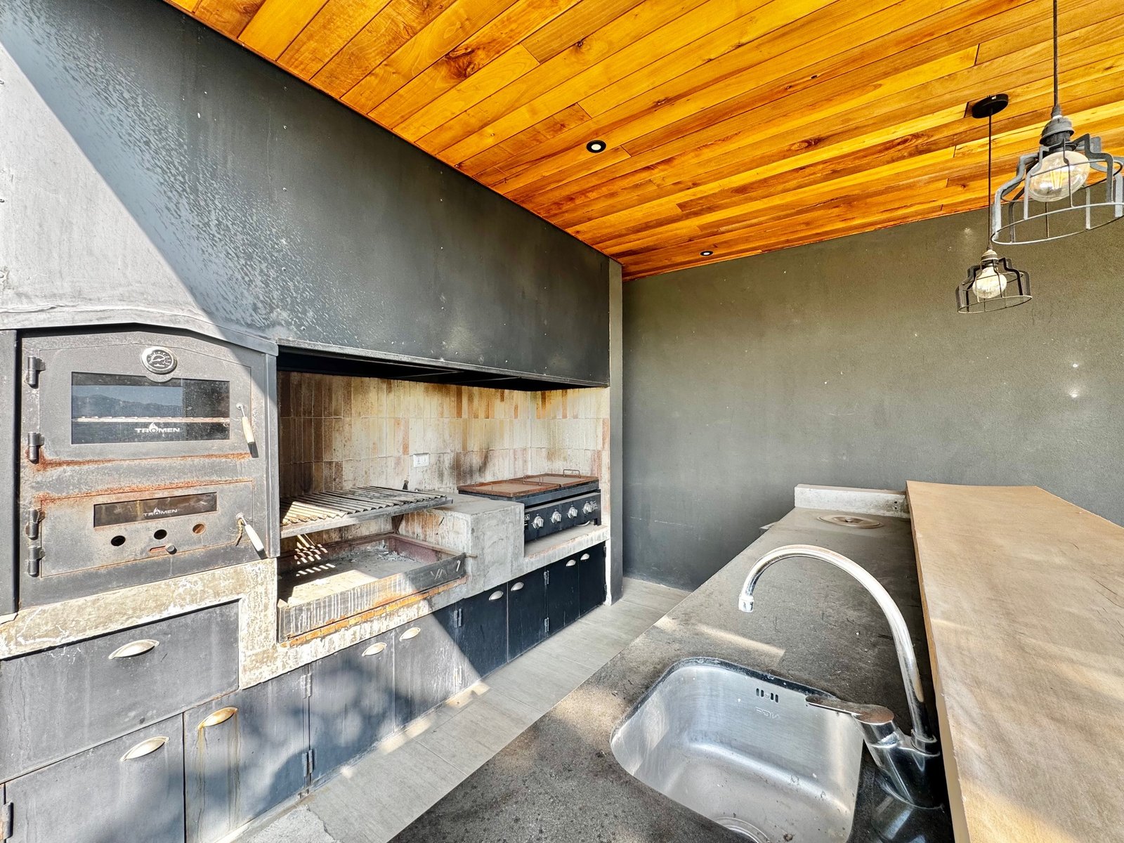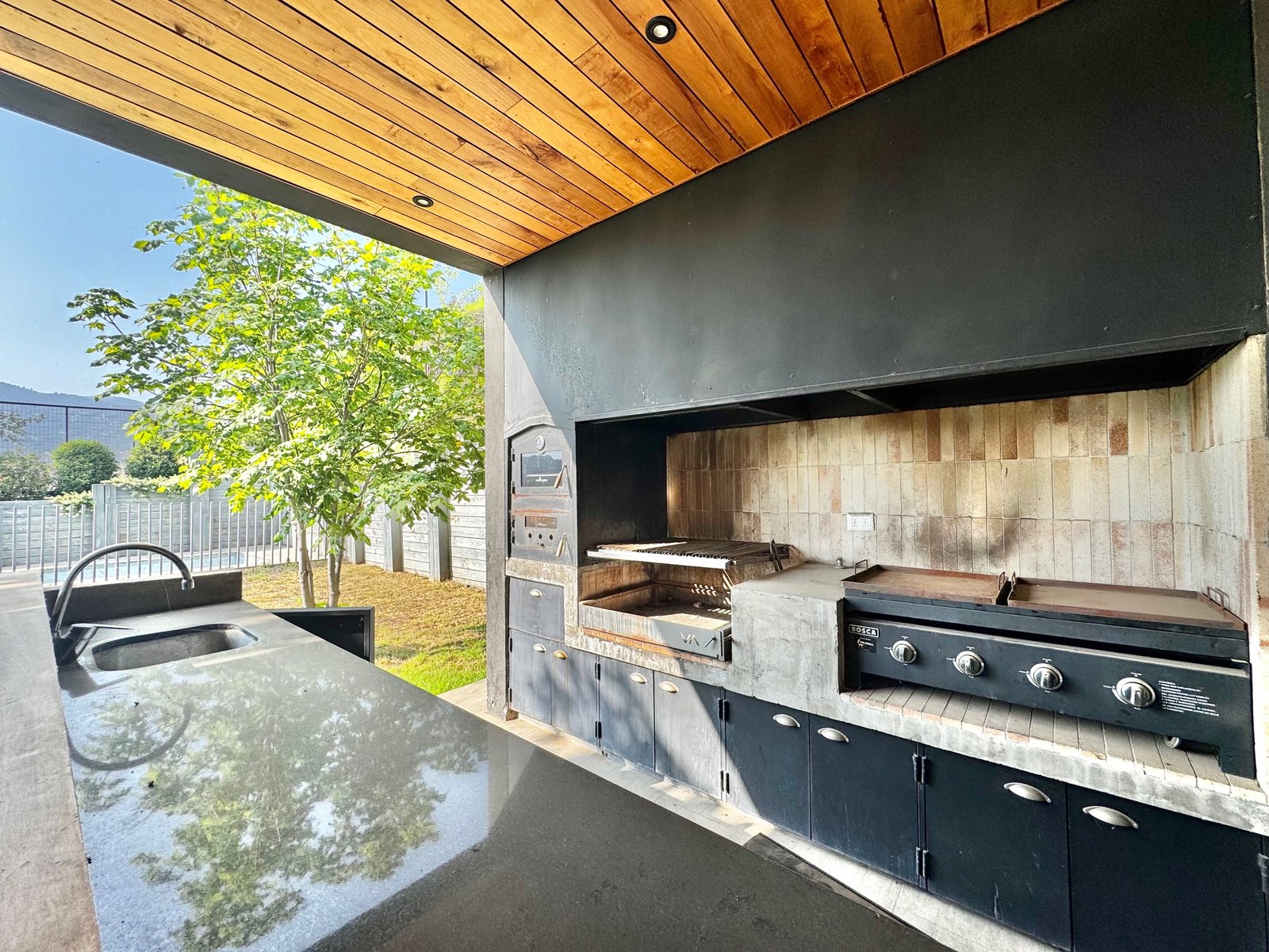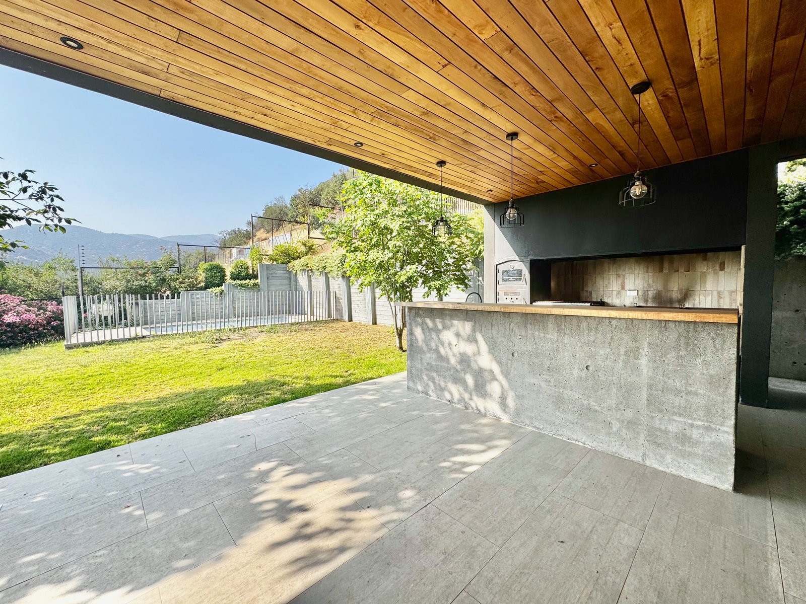 – Living y comedor con salida a amplia terraza, con quincho y jardín formado con piscina.
