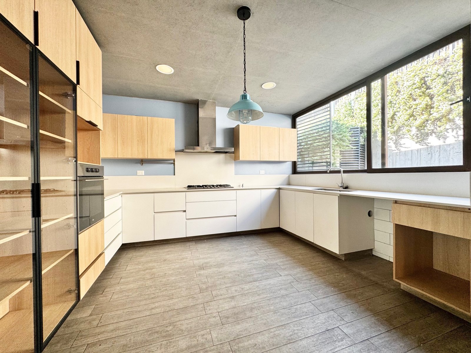 – Cocina con cubiertas de silestone, horno, encimera y campana Teka.