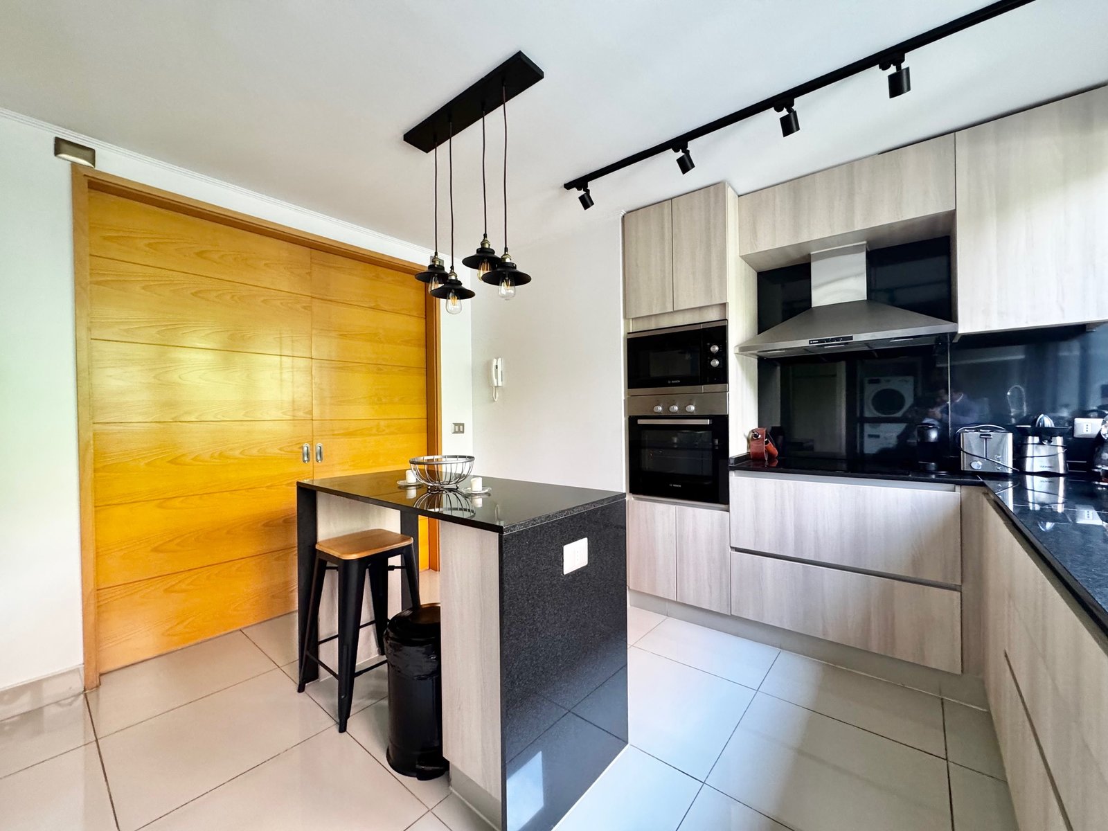 Cuenta con innovadoras terminaciones pensadas para tu bienestar. Moderna cocina con cubierta de cuarzo y suite de electrodomésticos, compuesto por encimera vitrocerámica, campana retráctil, horno eléctrico y microondas, brindando comodidad y funcionalidad en cada detalle.