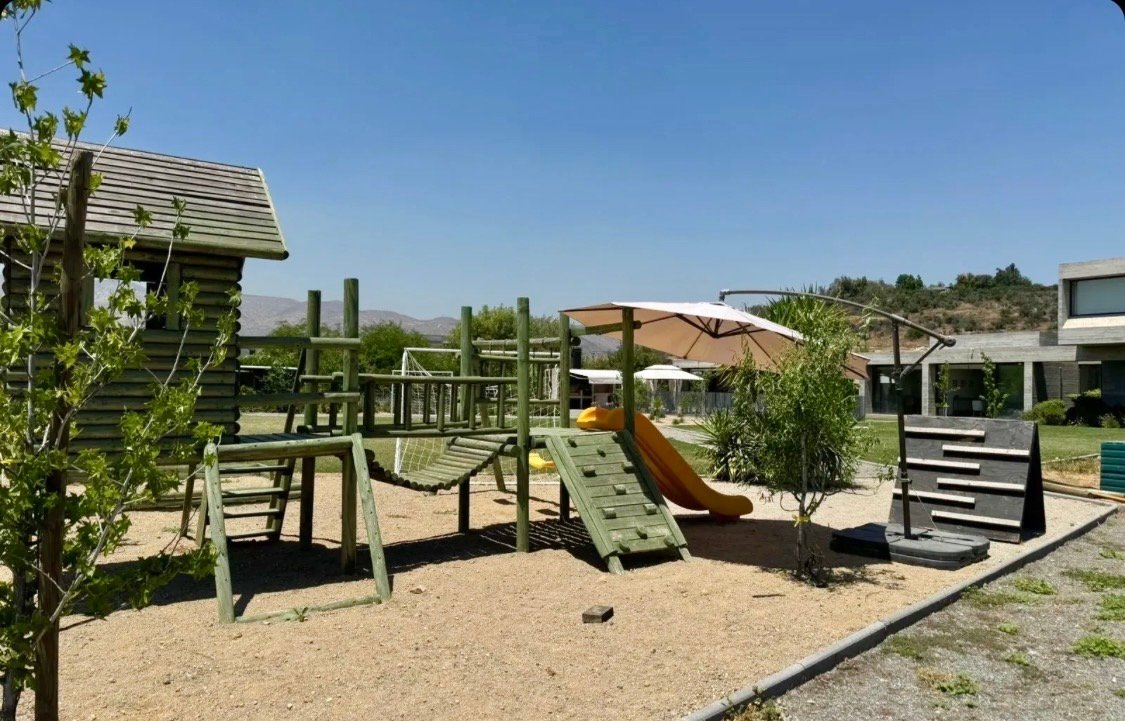 -Piscina temperada. -Sector con juegos de niños.