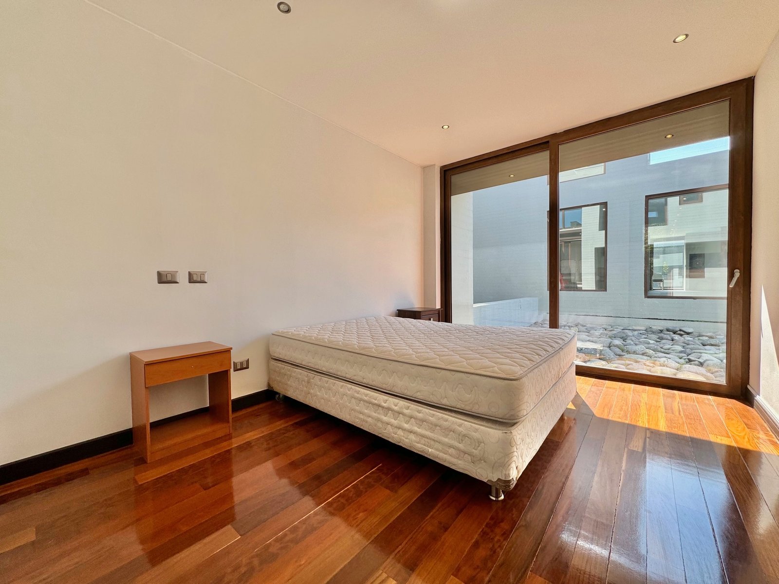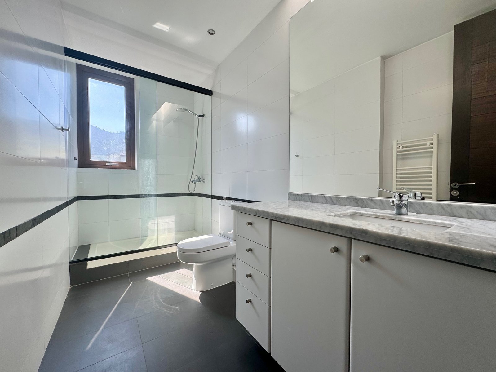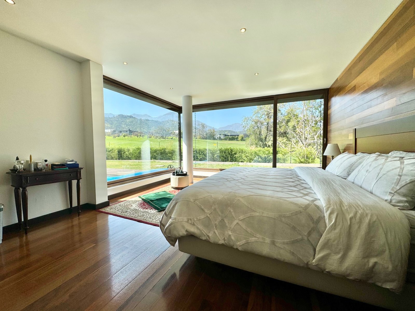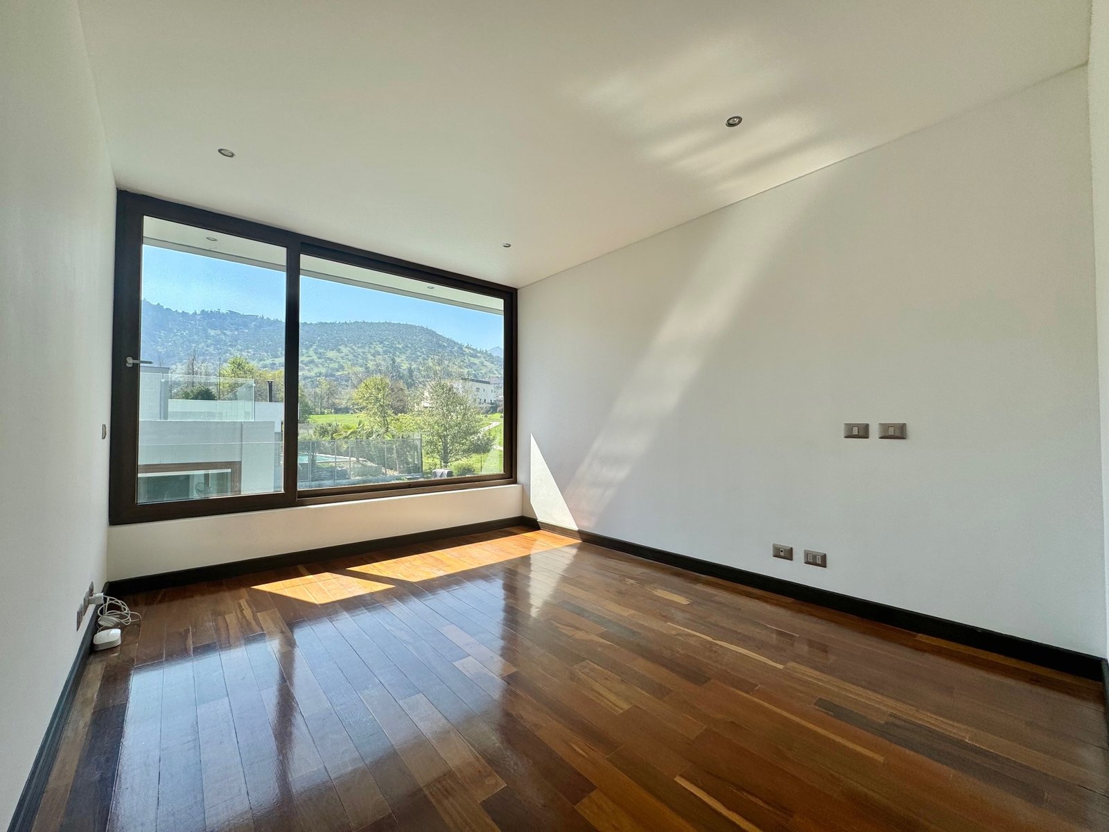 En el tercer piso nuevo y remodelado gran dormitorio principal en suite con amplia terraza, dos walk in closet, baño con buenos espacios, ducha y WC separados, jacussi, y maravillosa vista a la cordillera y campos de golf.