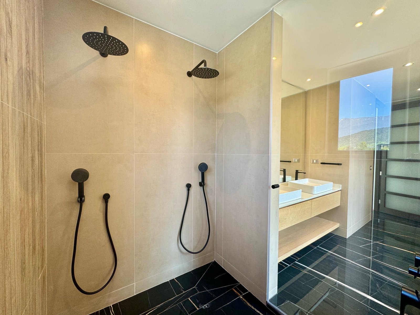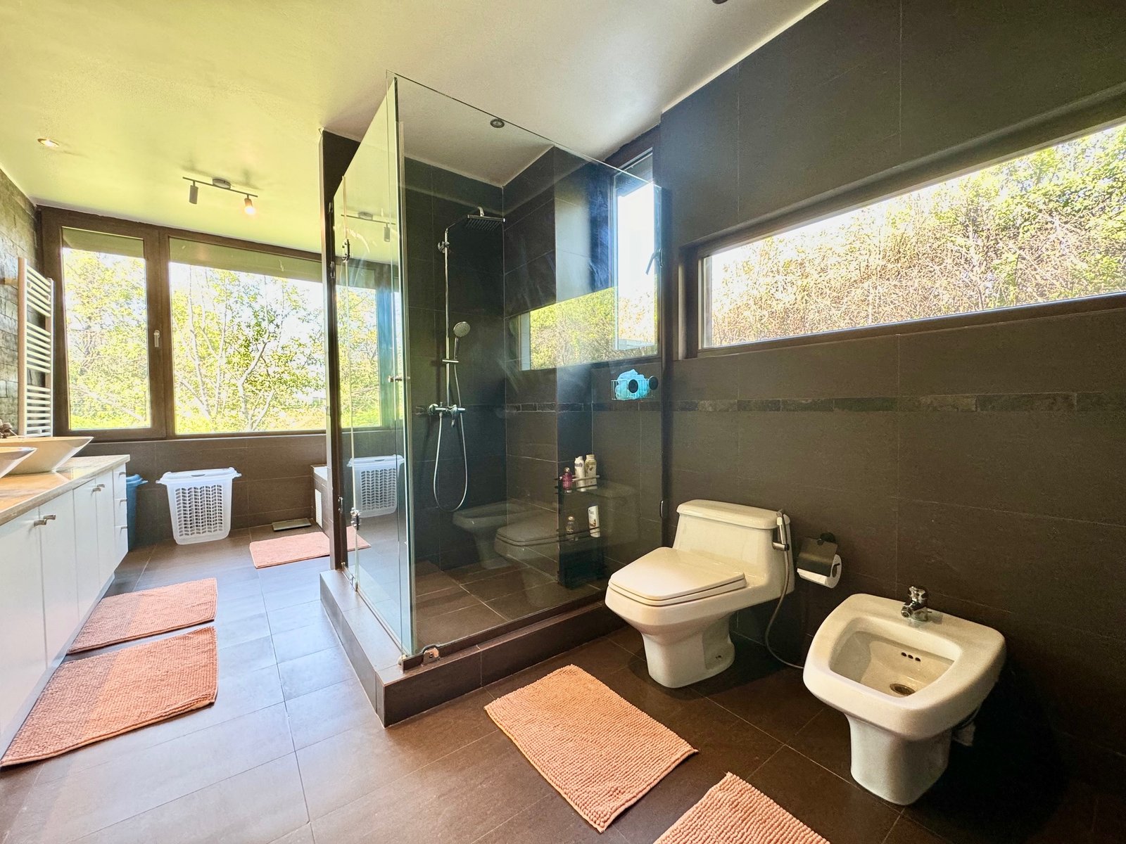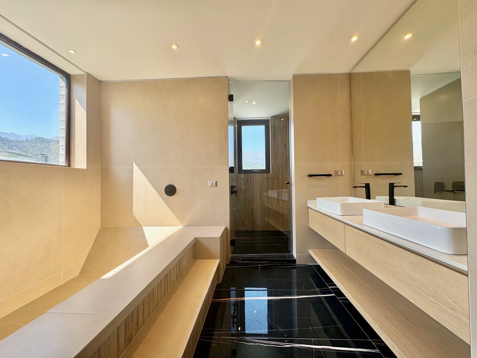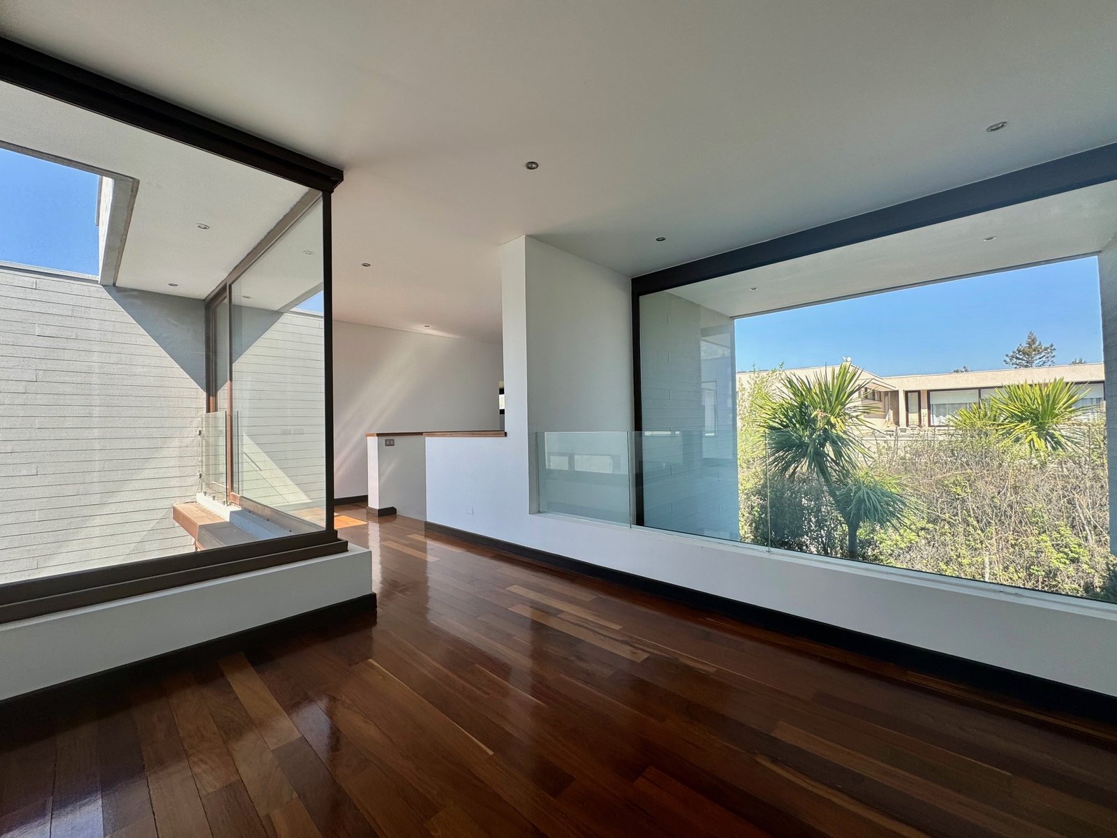 La casa cuenta con calefacción por losa radiante, ventanas termopanel, persianas eléctricas en todo el primer piso y estacionamiento para 4 vehículos.