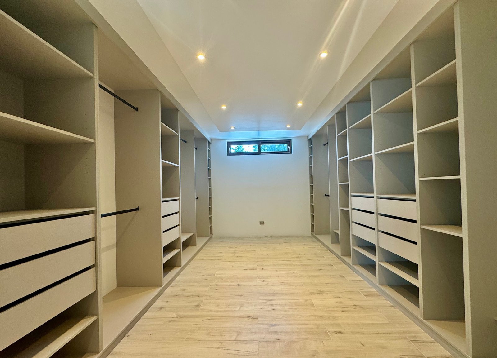 En el mismo nivel un dormitorio en suite con walk in closet y espacioso dormitorio en suite con un doble walk in closet y vista a la cancha de golf.