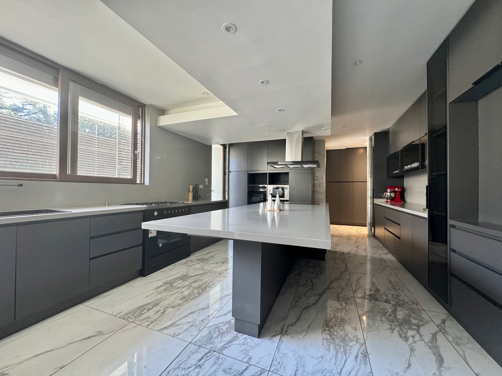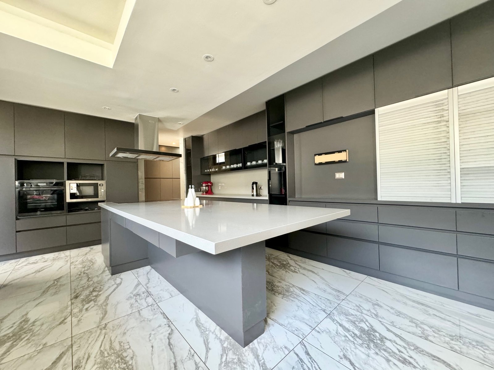 Cocina amoblada, remodelada y moderna, con repostero, espacio para comedor de diario, despensa, lavadero interior y dos dormitorios de servicio que comparten 1 baño. Baño de visitas y escritorio.