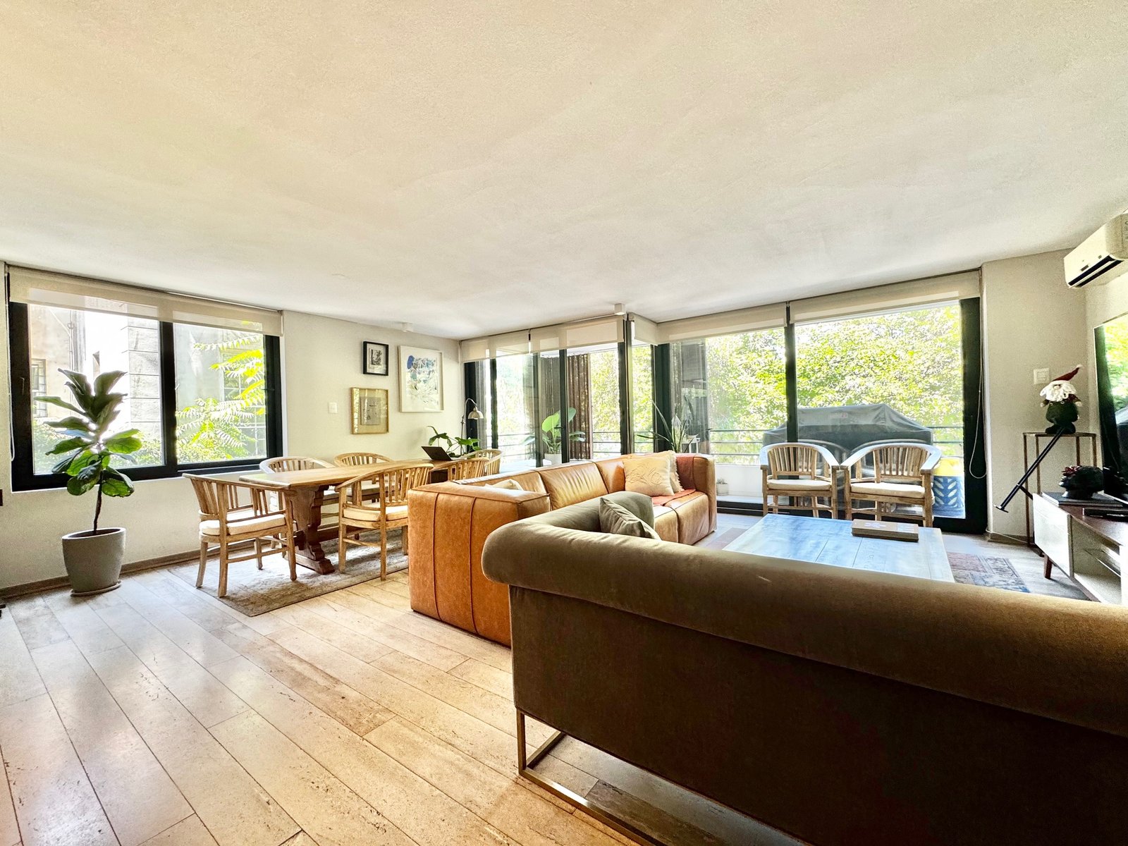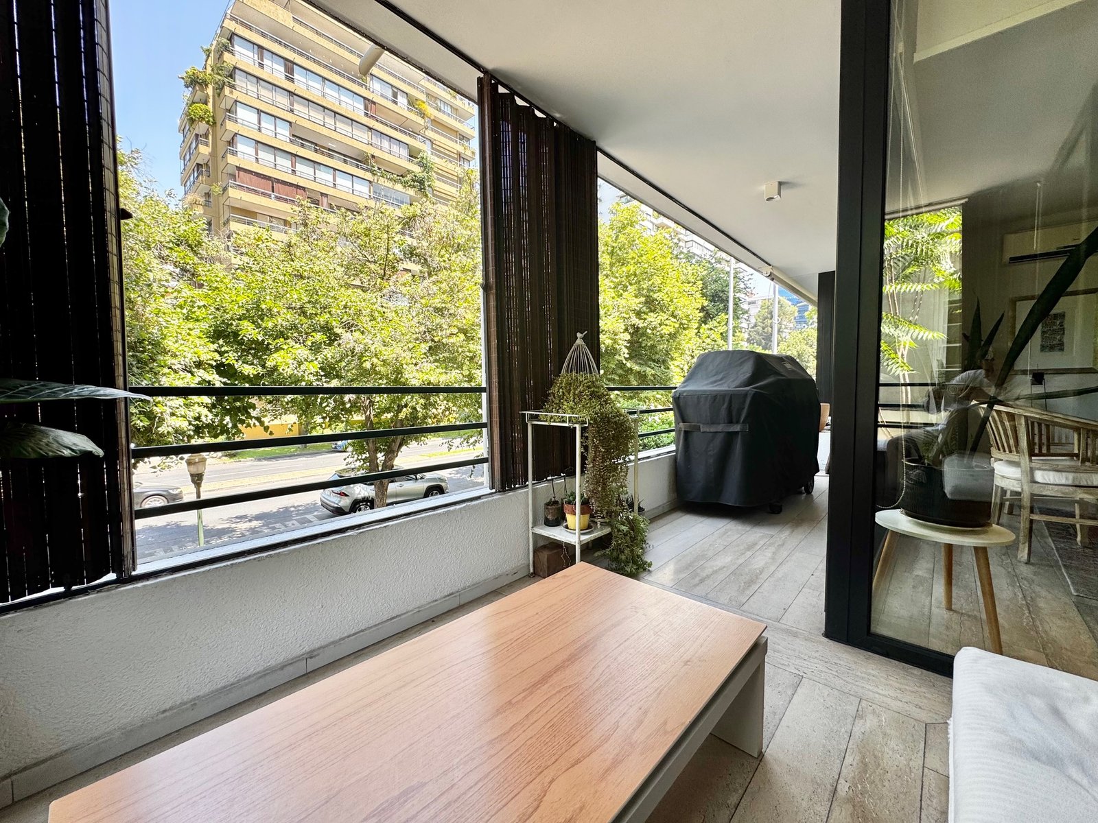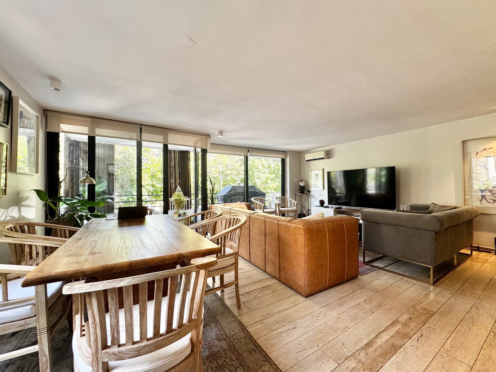 Entramos por hall de distribución y conectamos con amplia sala living y comedor juntos con orientación sur-poniente y salida a terraza con vista a lindos árboles. Aire acondicionado.