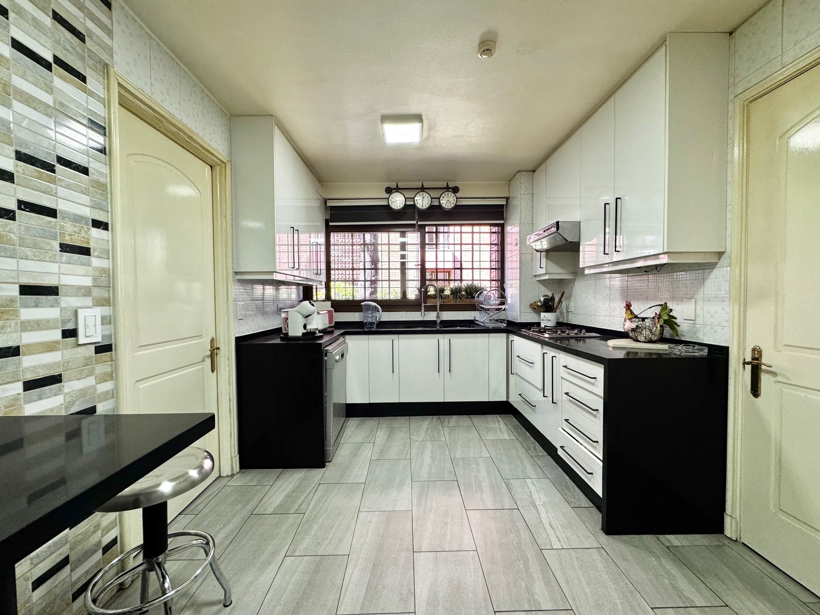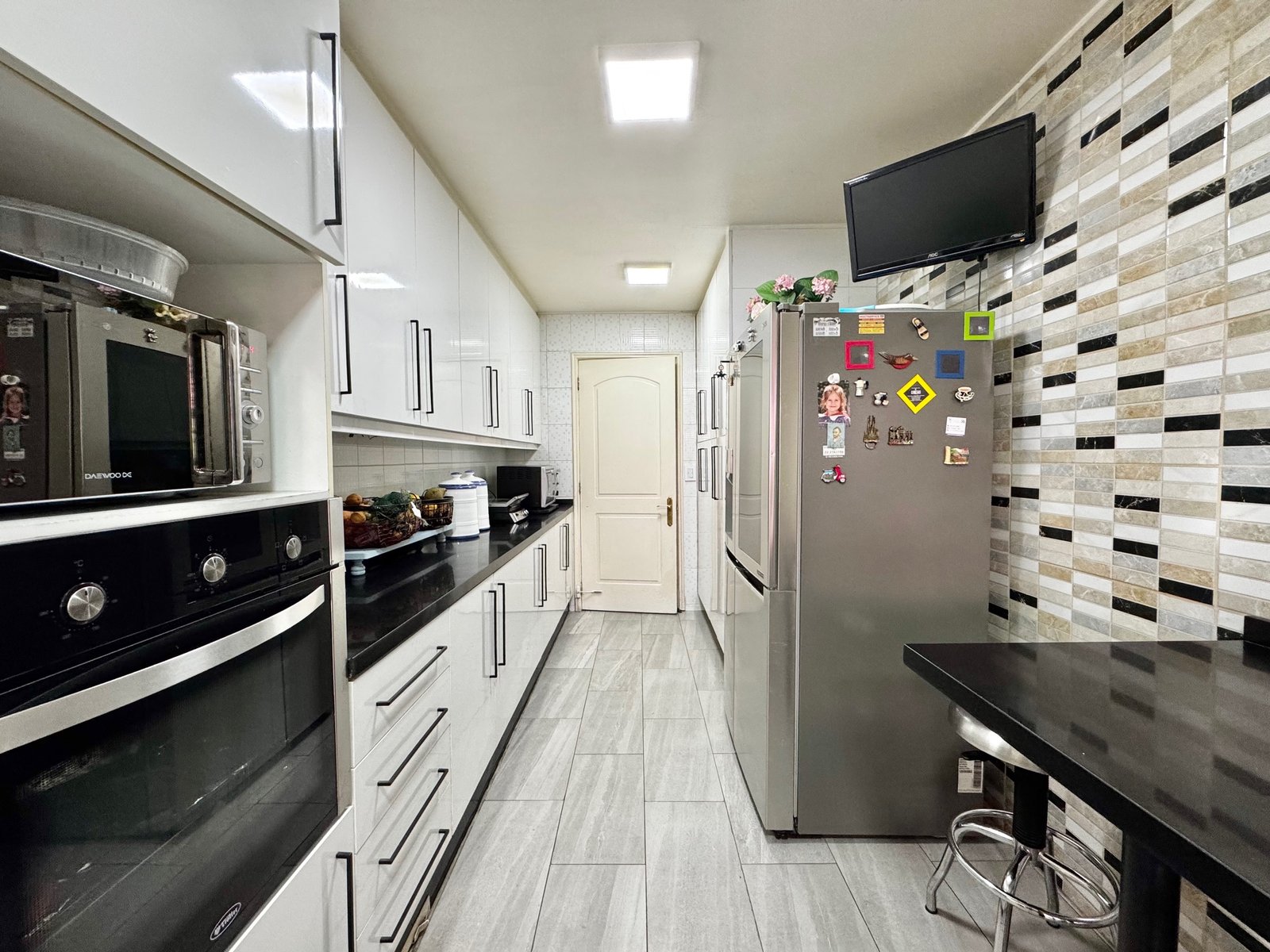 Cocina muy luminosa, completamente remodelada con cubierta de silestone y comedor de diario. Amplia logia. Pieza y baño de servicio.