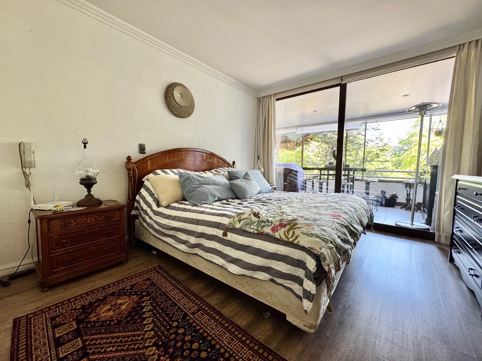 Dormitorio principal en suite de gran tamaño con salida a la terraza principal. Todo el departamento con ventanas termopanel con marcos de pvc.