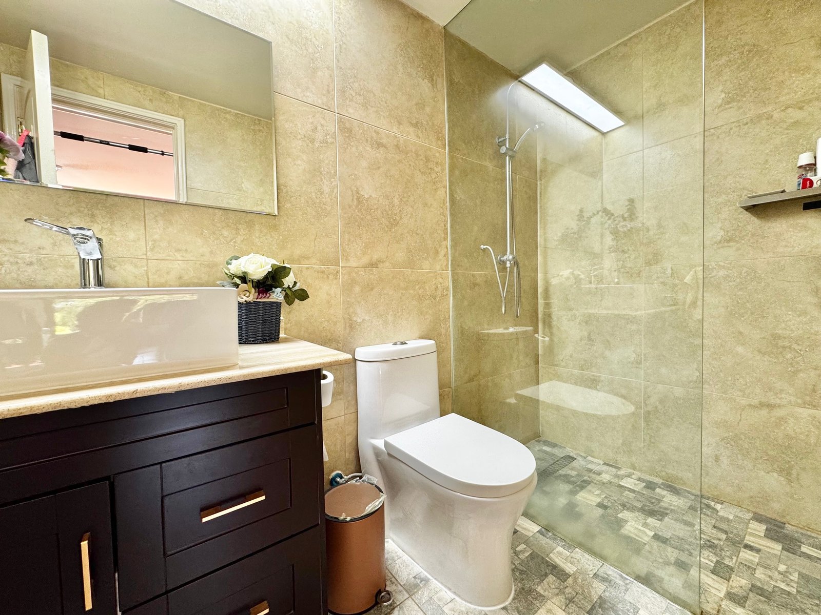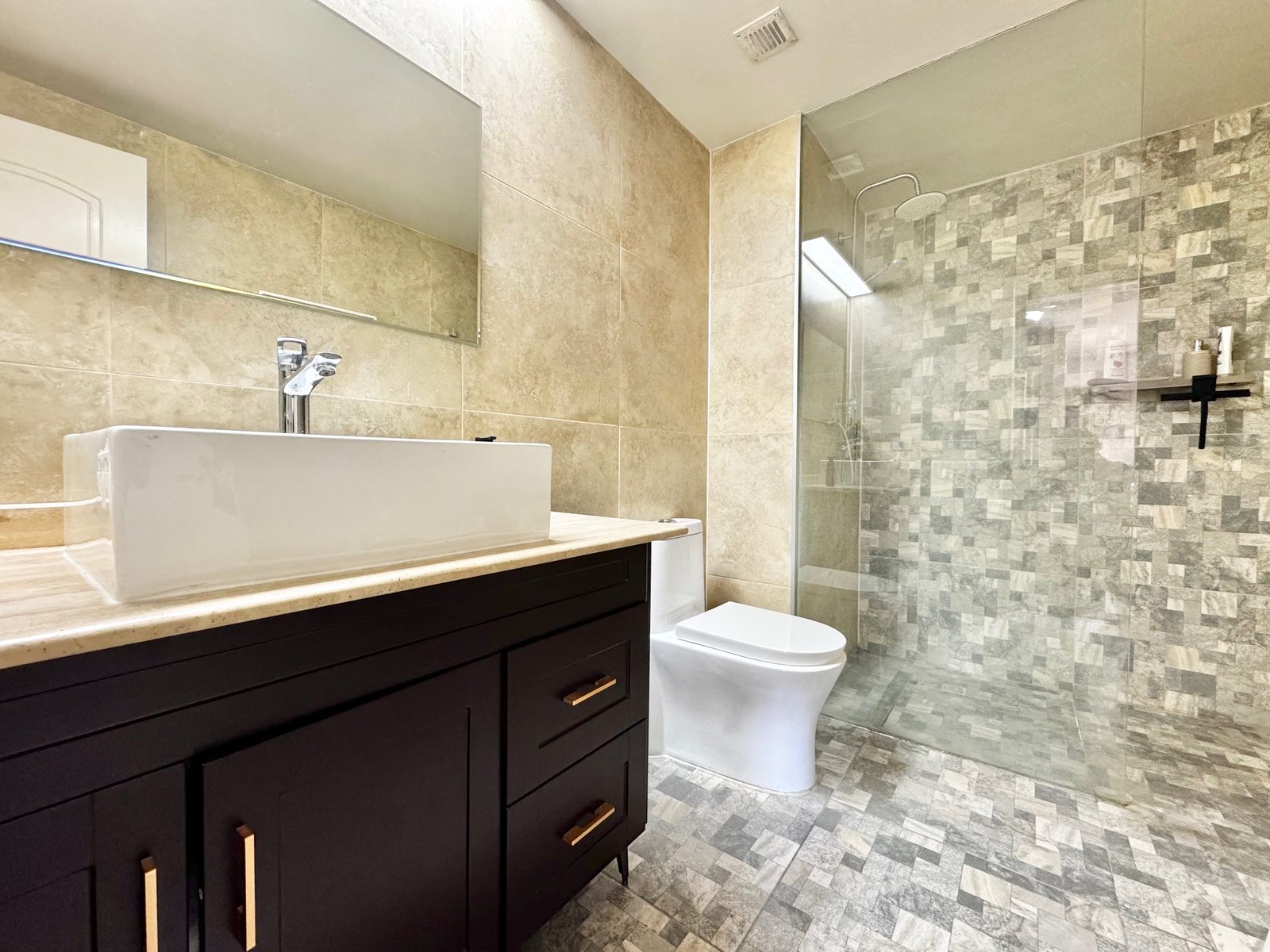 El departamento tiene todos los baños remodelados, con shower door.