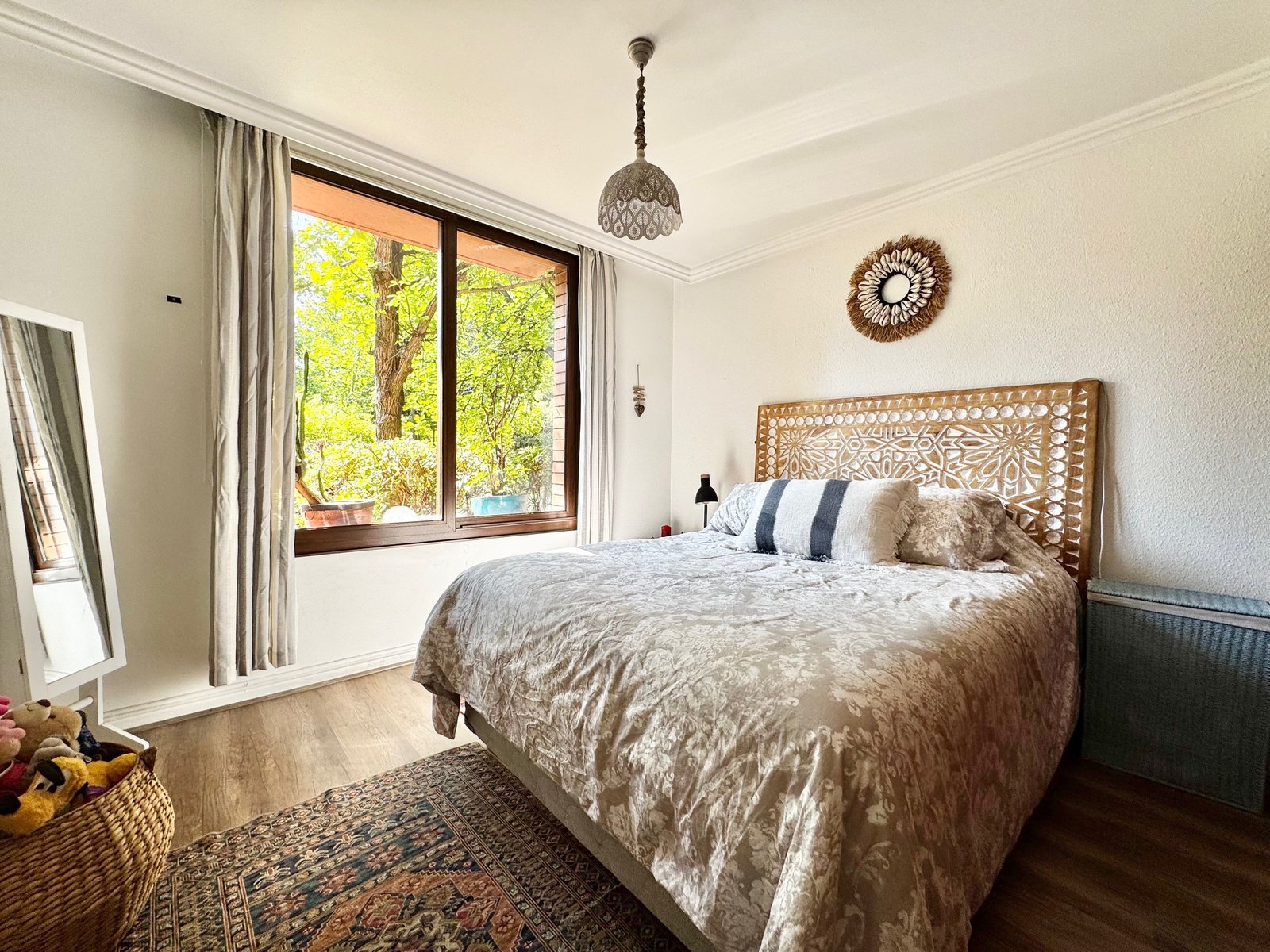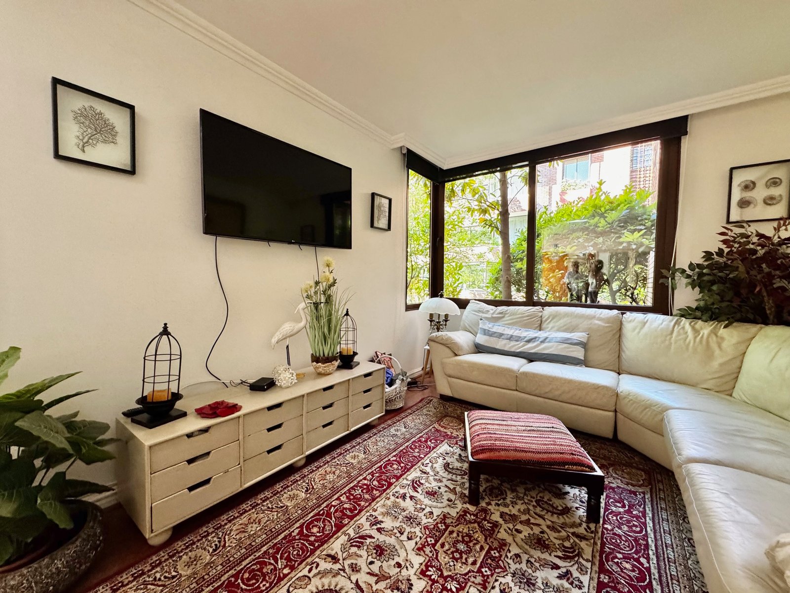 Hacia el otro lado, tiene 3 amplios dormitorios, 2 baños completos y una sala de estar. Todas con orientación norte. Muchas luz natural y vista a jardines del edificio.