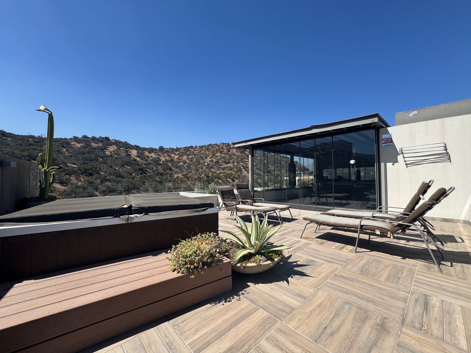 Espectacular departamento triplex con linda vista y terraza amplia en tercer piso, con estupendo quincho, jacuzzi y vista 360 a montaña y cordillera.