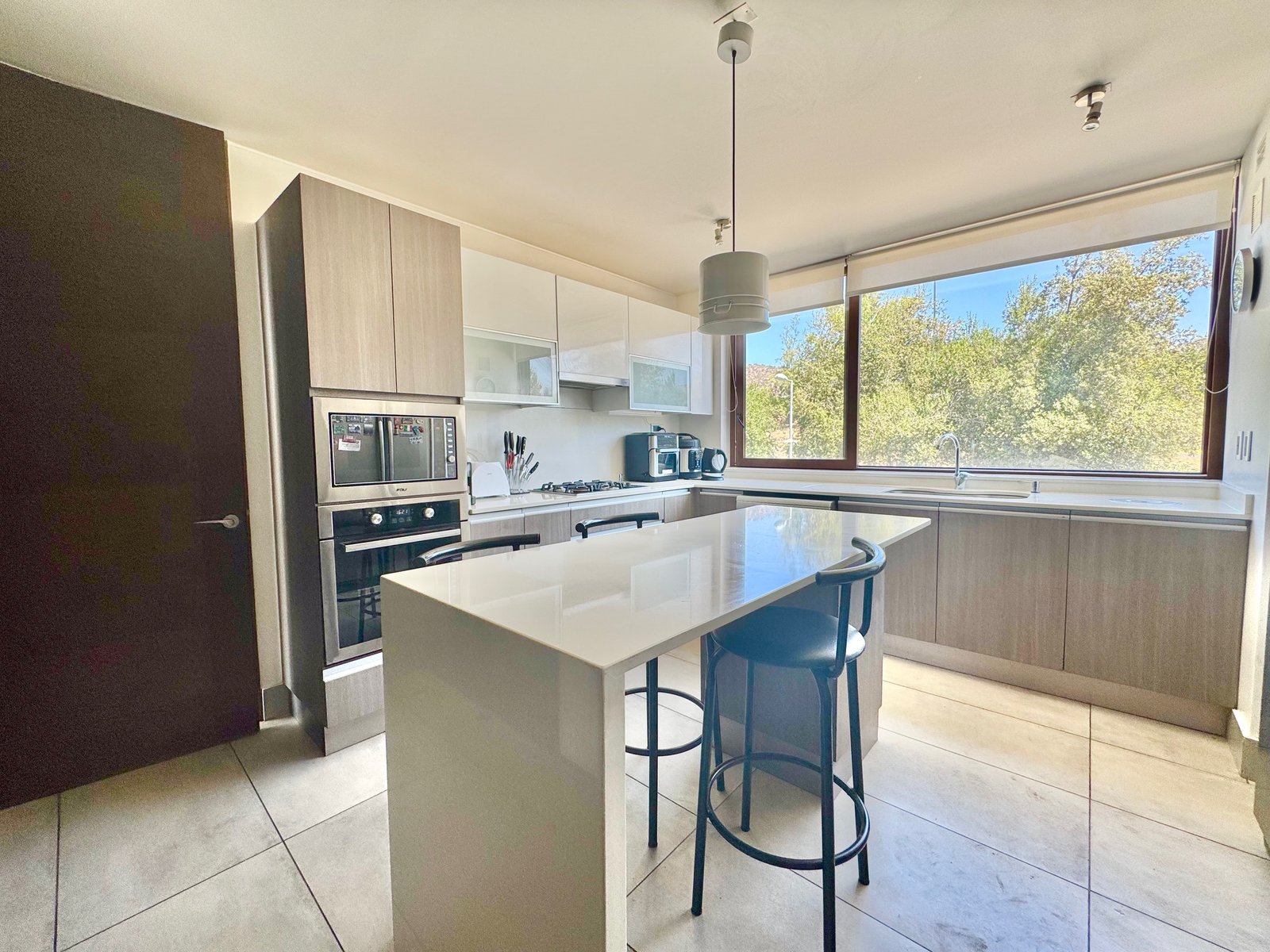 Cocina full equipada con mesón central y muy buenos espacios que permiten estupenda movilidad dentro de la cocina. Equipamiento empotrado.